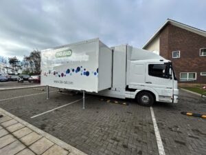 This roadshow used a 10.5tonne truck to visit key hospital sites in the UK. Inside were two pieces of medical equipment each weighing up to half a tonne, which were safely installed…